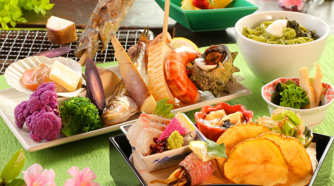 この時期ならではの食材を使った、本格的な囲炉裏料理をお愉しみいただけるコース料理をご用意しております。