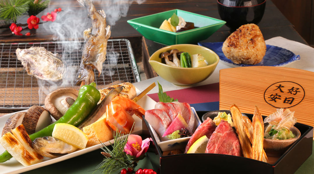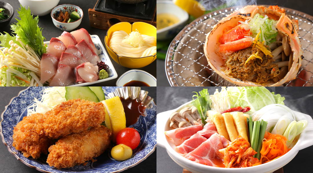 鰤、牡蠣、ハタハタ、冬野菜など季節の食材を使ったお料理と囲炉裏炭火焼き・炉端焼きをご堪能いただけます。