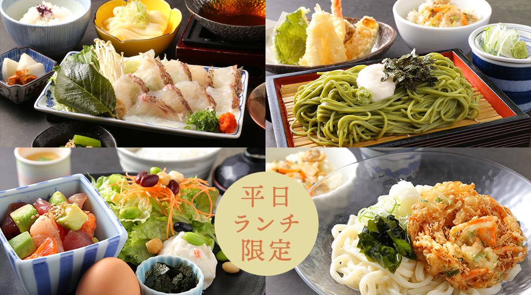 桜鯛しゃぶ御膳、茶そば御膳など季節のおすすめメニューをご用意しております。また、平日のランチ限定メニューも新たに登場。