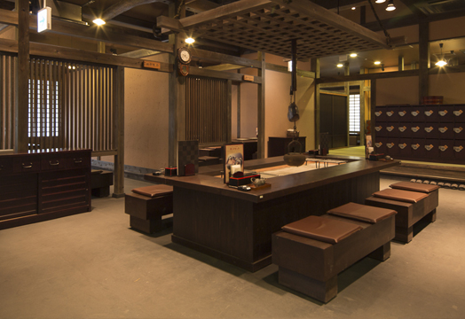 囲炉裏茶寮 八里 店内はレトロで昔懐かしい里山空間。囲炉裏を配したテーブルで炭火を囲って食事を楽しめます。 -