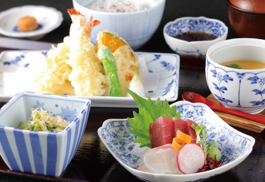 八里御膳(イメージ) 店名を冠したおすすめ御膳。季節の小鉢やお刺身、天ぷら、茶碗蒸し、ごはん、香の物、味噌汁と盛りだくさん。 -