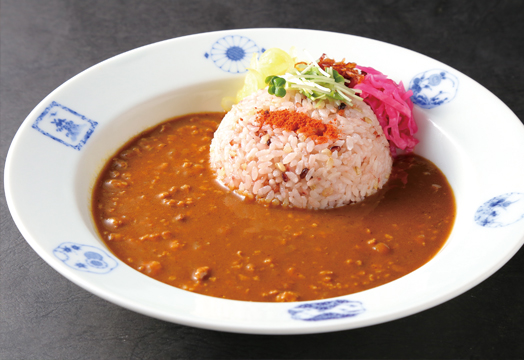 八里オリジナル五穀米スパイスカレー(イメージ) 数種類の香味野菜と15種類以上のスパイスが織りなす豊かな香り。そしてトマトの旨味と酸味が特徴的なオリジナルスパイスカレー。