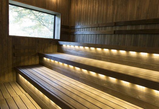 熱の室(サウナ) 人気の「ロウリュウサービス」で、アロマの良い香りと心地良い熱波で思いっきり汗をかいたら、沢水風呂でスッキリ整う。 -