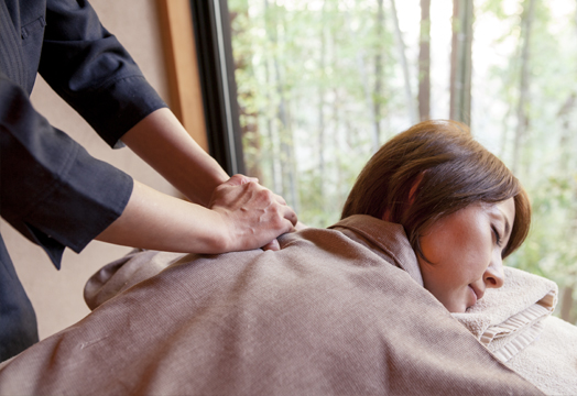 温泉との相乗効果で、疲れたからだをほぐしてリラックスへと導きます。「ほぐし庵 ゆるるか」では、着替えをしてベッドで受けるボディケアメニューをご用意しており、「ほぐし処 座楽」では、リクライニングチェアで受けられる手軽なコースをご用意しております。